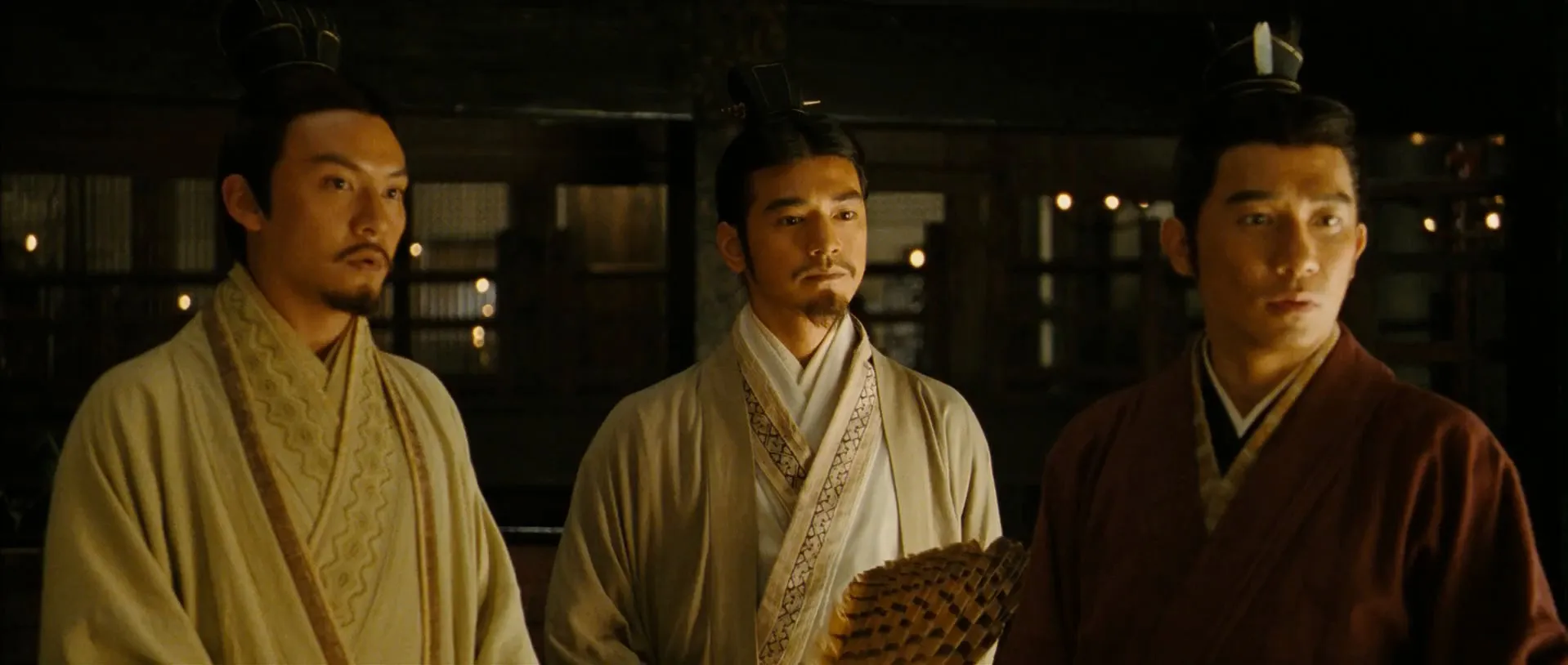 Star Cast: Tony Leung Chiu-wai as Zhou Yu, Takeshi Kaneshiro as Zhuge Liang, Zhang Feng Yi as Cao Cao, Chang Chen as Sun Quan, Zhao Wei as Sun Shangxiang, Hu Jun as Zhao Yun, Shidô Nakamura as Gan Xing, Chi-Ling Lin as Xiao Qiao, You Yong as Liu Bei, Hou Yong as Lu Su, Tong Dawei as Sun Shucai, Song Jia as Li Ji, Mijid Baasanjav as Guan Yu, Jinsheng Zang as Zhang Fei, Zhang Shan as Huang Gai, Wang Qingxiang as Kong Rong, Wang Hui as Cao Hong, Xie Gang as Hua Tuo, Shi Xiao-Hong as Jiang Gan, Xu Fengnian as Zhang Liao, Guo Chao as Yue Jin, Hu Xiaoguang as Xiahou Jun, Cui Yu-Gui as Xu Chu, Jiang Tong as Li Tong, Ma Jingjing as Wei Ben, Zhen Yi as Cai Mao, Jia Hongwei as Zhang Yun, Zhao Cheng-Shun as Xun You, Zhang You as Soldier